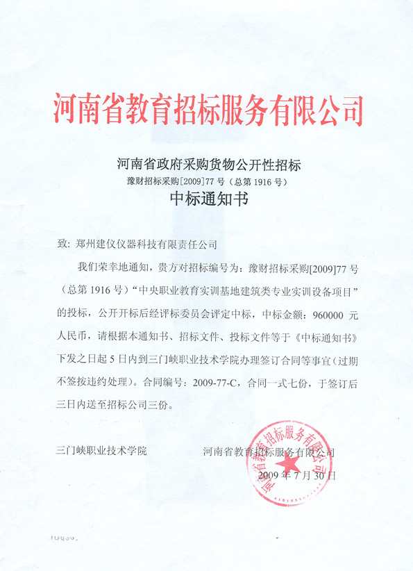 豫財(cái)招標(biāo)采購(gòu)(2009)77號(hào)