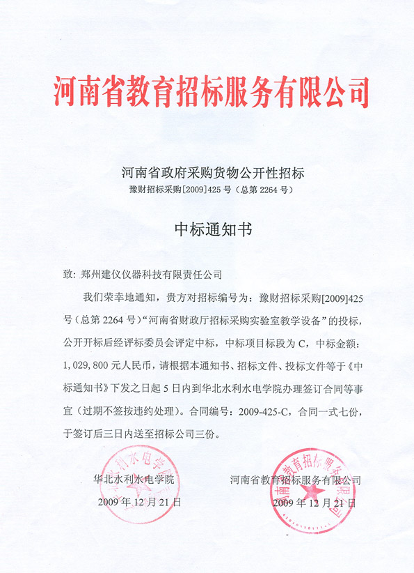 豫財(cái)招標(biāo)采購(2009)425號(hào)項(xiàng)目C