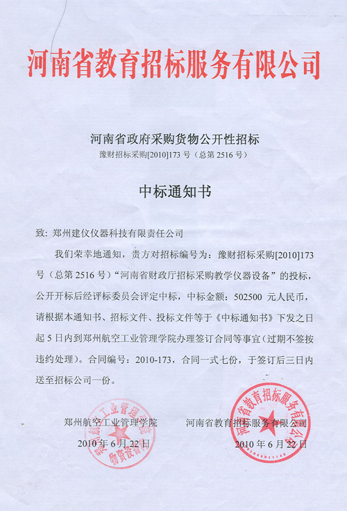 豫財(cái)招標(biāo)采購(gòu)(2010)173號(hào)
