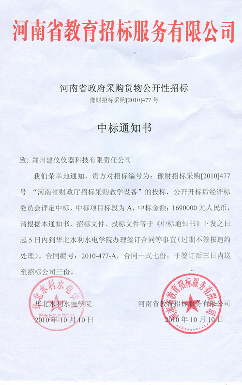 豫財(cái)招標(biāo)采購(2010)477號(hào)