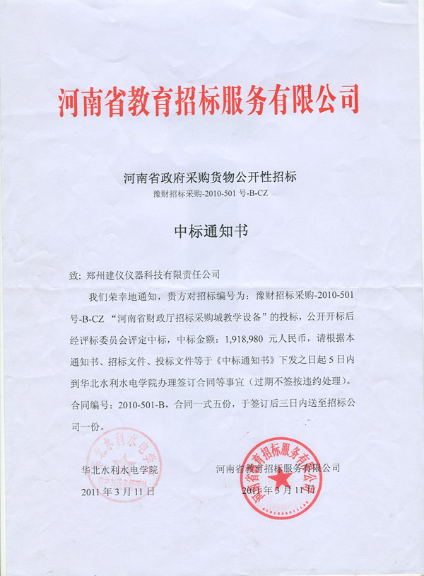 豫財招標(biāo)采購【2010】501-B-CZ號