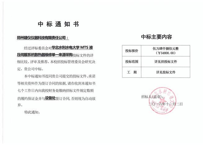 華北水利水電大學(xué) 中標(biāo)通知書