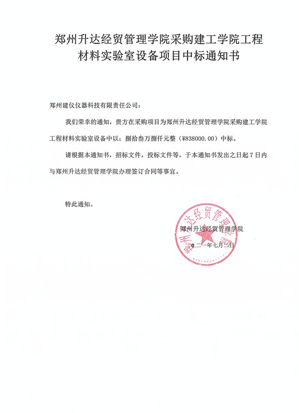 鄭州升達經(jīng)貿(mào)管理學院采購建工學院工程材料實驗室設(shè)備項目